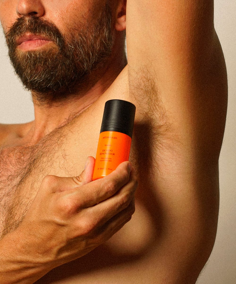 Arturo Alba Escudo Renovador Desodorante Transformador es una fórmula avanzada con activos sinérgicos de acción bacteriostática y desodorante, diseñada para inhibir el crecimiento de las bacterias responsables del mal olor.