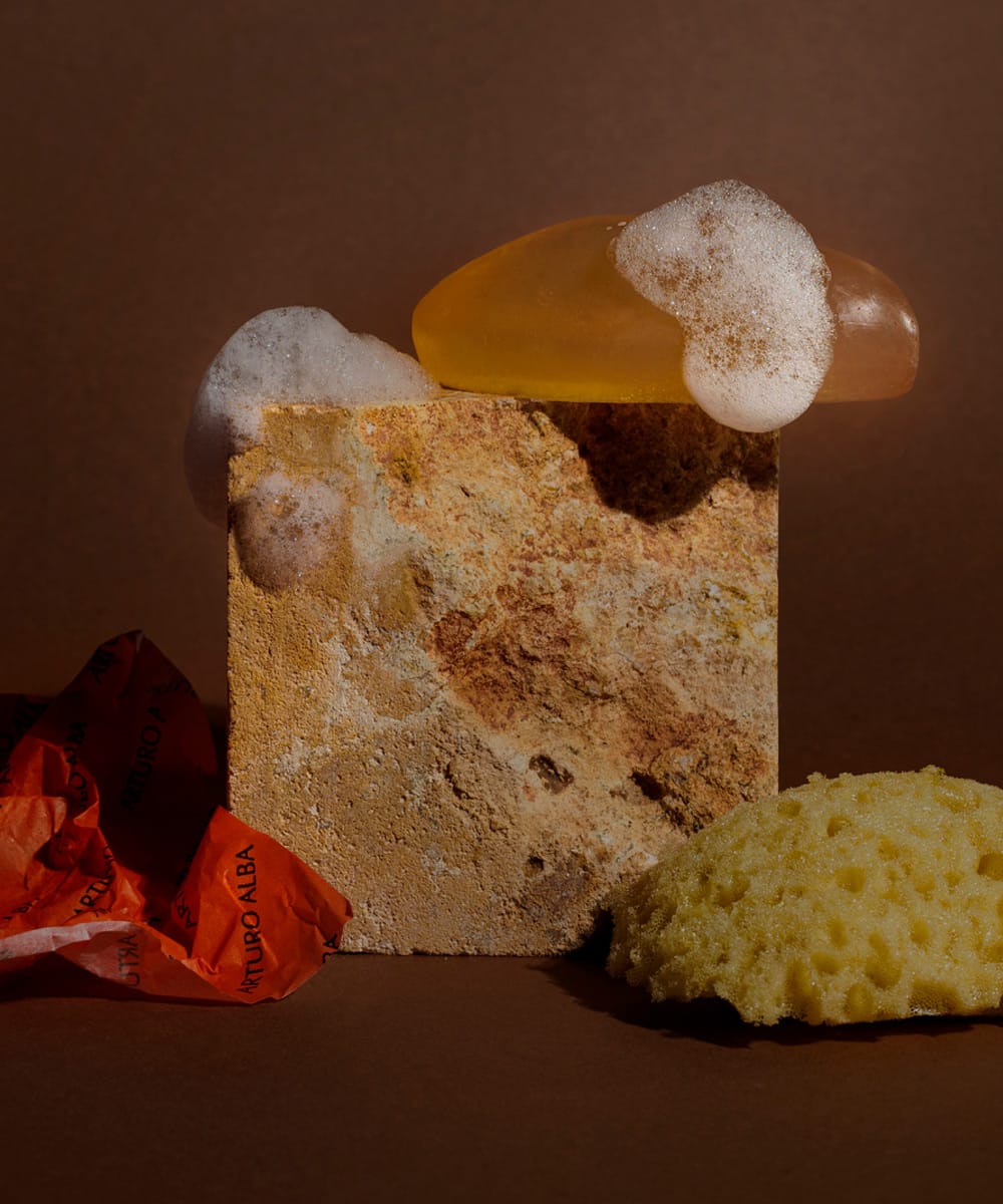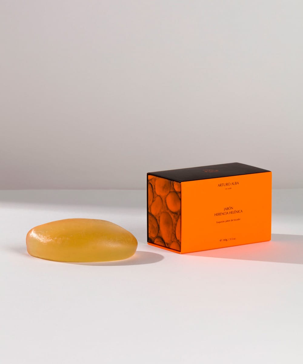 Arturo Alba Jabón Herencia Helénica es una pieza inspirada en los rituales de pureza y cuidado de la antigua Grecia, donde la limpieza formaba parte de una idea más amplia de bienestar y equilibrio.