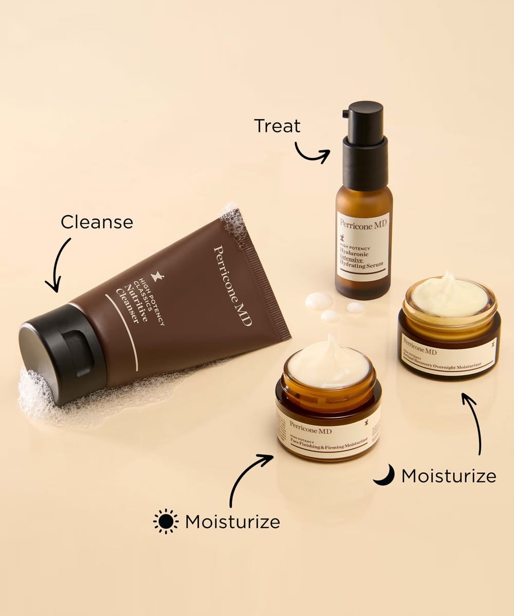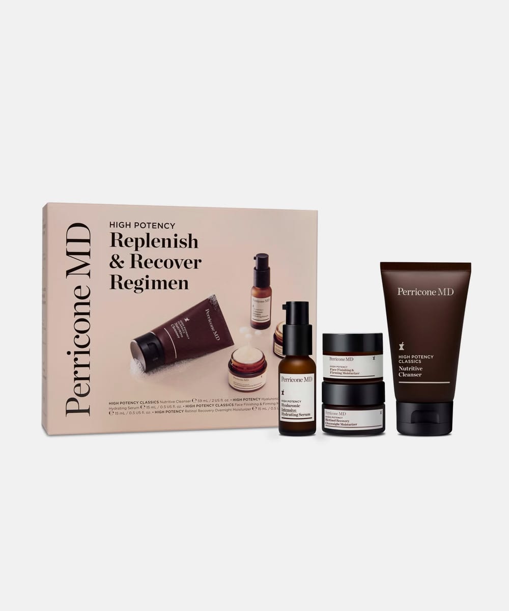 Perricone MD Replenish & Recover Regimen es un kit con cuatro fórmulas que hidratan, reafirman y reparan.